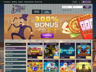 Being a Casino Mr James player comes with a few appealing benefits. Starting with a 300% welcome offer can give a vital jolt for your bankroll before gaming on a number of compatible devices. A high level of functionality is enjoyed on various screens and the calibre of the games is very strong due to the contributions of BetSoft and VIVO.